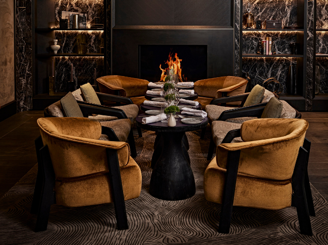 The landscaped Terrace offers a fluid transition to modern patio seating, featuring sleek fireplaces that create a welcoming ambiance for any season. Whether you're relaxing with friends or hosting a gathering, the canopied bar provides the perfect backdrop, with British artist Anish Kapoor's iconic mountain sculpture adding a touch of artistic elegance to the space. Enjoy the best of both worlds—comfort and sophistication—on the Terrace, year-round.